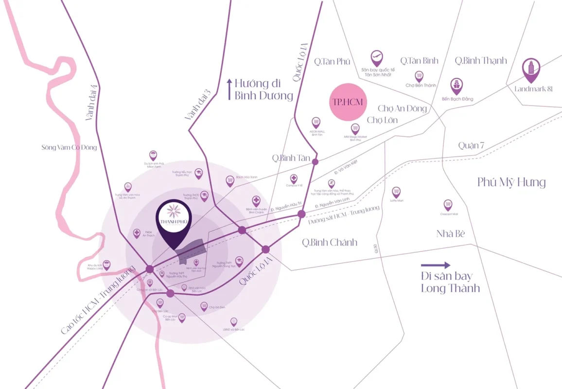 Thanh Phú Centre Point nằm mặt tiền 830C (Bến Lức), ven sông Rạch Dơi, kết nối 3 vùng kinh tế trọng điểm.