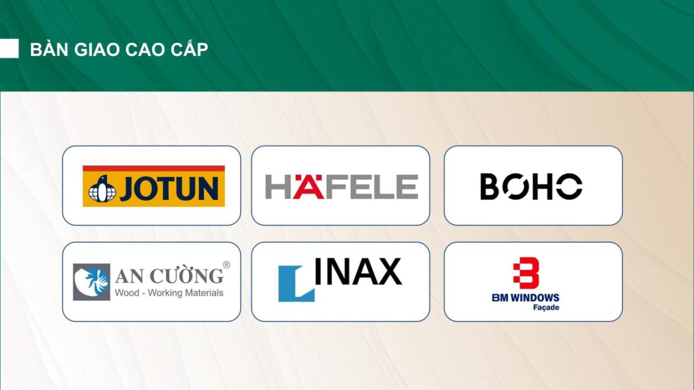 Các vật liệu đều có nguồn gốc rõ ràng, thân thiện môi trường và đáp ứng tiêu chuẩn an toàn như chống cháy, chống thấm và cách âm.